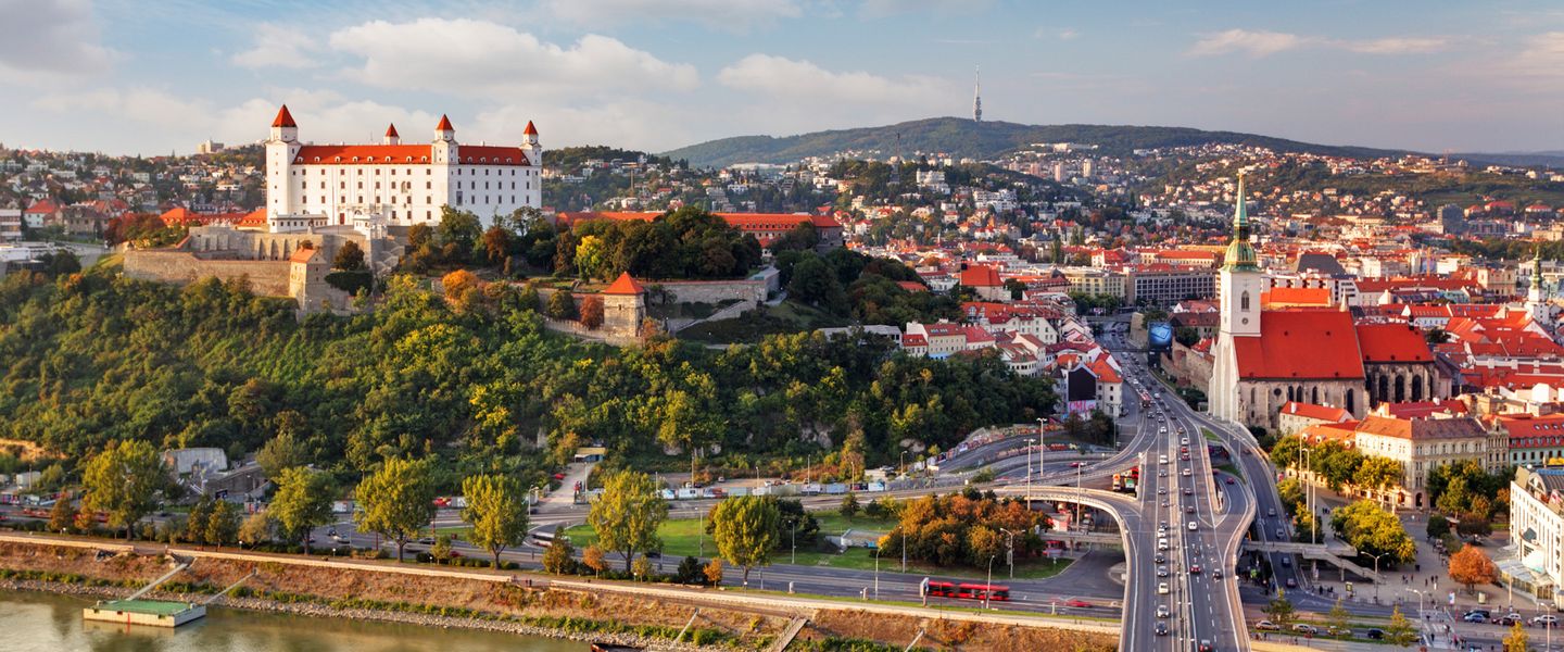 Bratislava ist die Hauptstadt der Slowakei und liegt im westlichen Teil des Landes, direkt an der Grenze zu Österreich und Ungarn. Die Stadt erstreckt sich entlang der Donau und ist bekannt für ihre historische Altstadt, die von einer Vielzahl von architektonischen Stilen geprägt ist, darunter Gotik, Barock und Renaissance. Bratislava ist berühmt für ihre beeindruckende Burg, die hoch über der Stadt thront, sowie für ihre lebendige Kultur und das reiche Erbe, das sich in den zahlreichen Museen, Galerien und Veranstaltungen widerspiegelt. Die Stadt hat eine lange Geschichte, die bis in die römische Zeit zurückreicht, und war im Laufe der Jahrhunderte ein wichtiger Handels- und Kulturstandort in Mitteleuropa. Heute zieht Bratislava Touristen aus aller Welt an, die die Mischung aus Geschichte, Kultur und modernem Stadtleben erleben möchten.