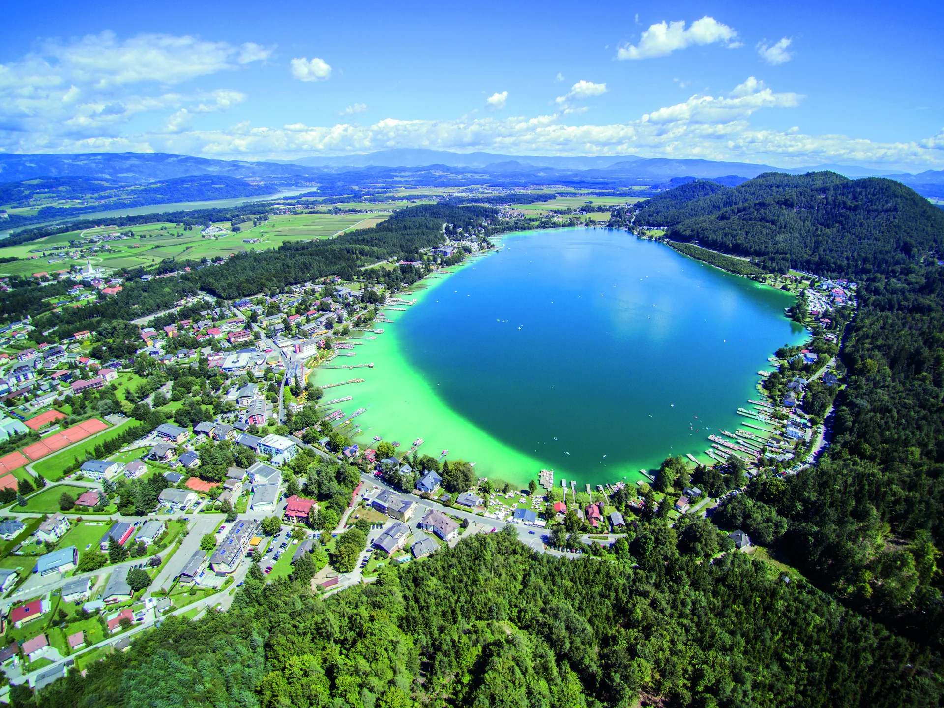 Der Klopeiner See liegt im Süden Österreichs, in der Nähe der Stadt Völkermarkt, und ist von einer malerischen Landschaft aus sanften Hügeln und Wäldern umgeben. Geografisch befindet sich der See in Kärnten, einer Region, die für ihre zahlreichen Seen und Berge bekannt ist. Die Anreise zum Klopeiner See ist sowohl mit dem Auto als auch mit öffentlichen Verkehrsmitteln gut möglich, wobei die Nähe zu größeren Städten wie Klagenfurt eine bequeme Erreichbarkeit gewährleistet. Die zentrale Lage des Klopeiner Sees macht ihn zu einem idealen Ziel für Tagesausflüge und ermöglicht es den Besuchern, auch andere Sehenswürdigkeiten der Region, wie die beeindruckenden Karawanken oder die charmanten Dörfer, zu erkunden. Die Kombination aus natürlicher Schönheit, vielfältigen Freizeitmöglichkeiten und der Möglichkeit, die Kultur der Region zu erleben, macht den Klopeiner See zu einem unverzichtbaren Ziel für Reisende, die die Wunder der Natur und die Gastfreundschaft Kärntens entdecken möchten.