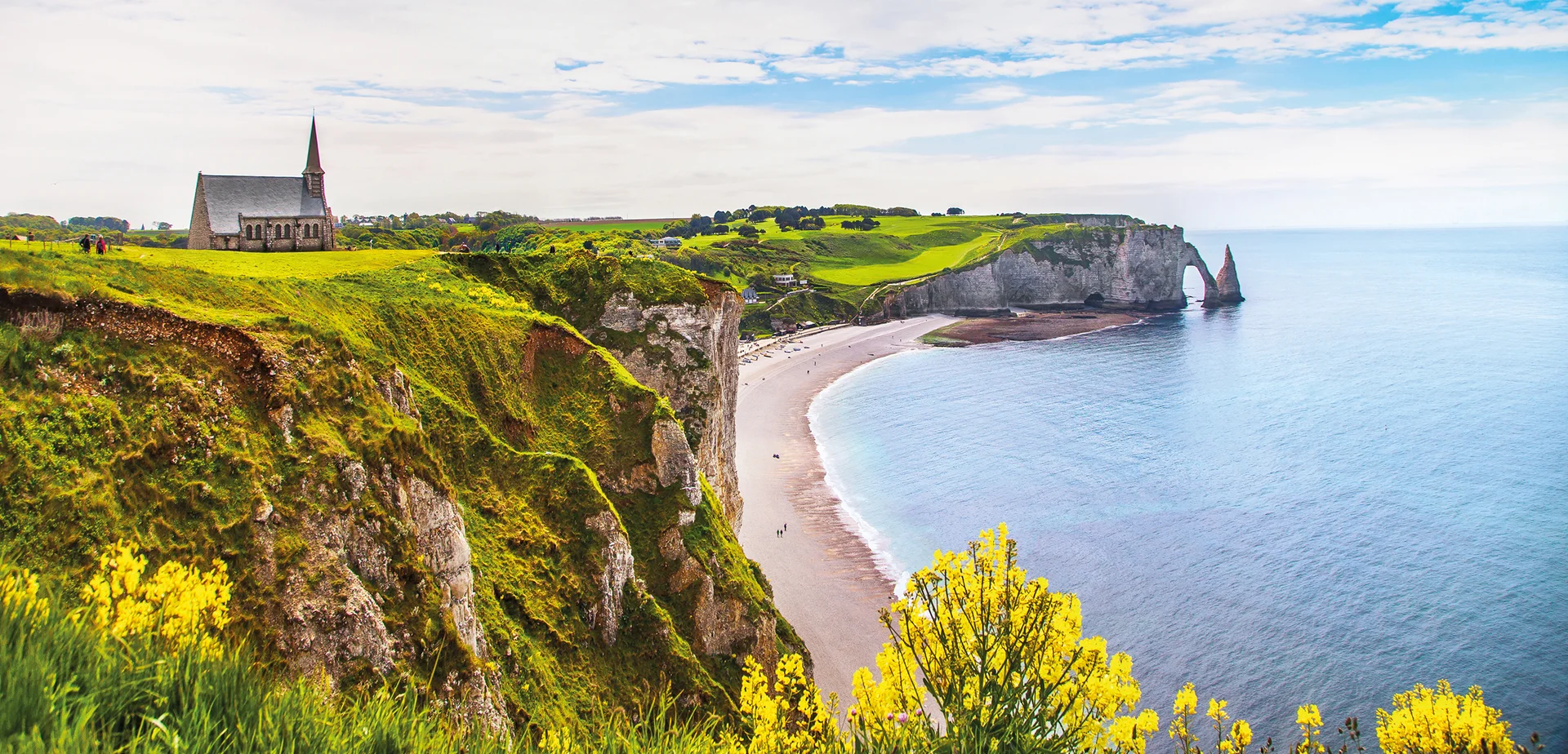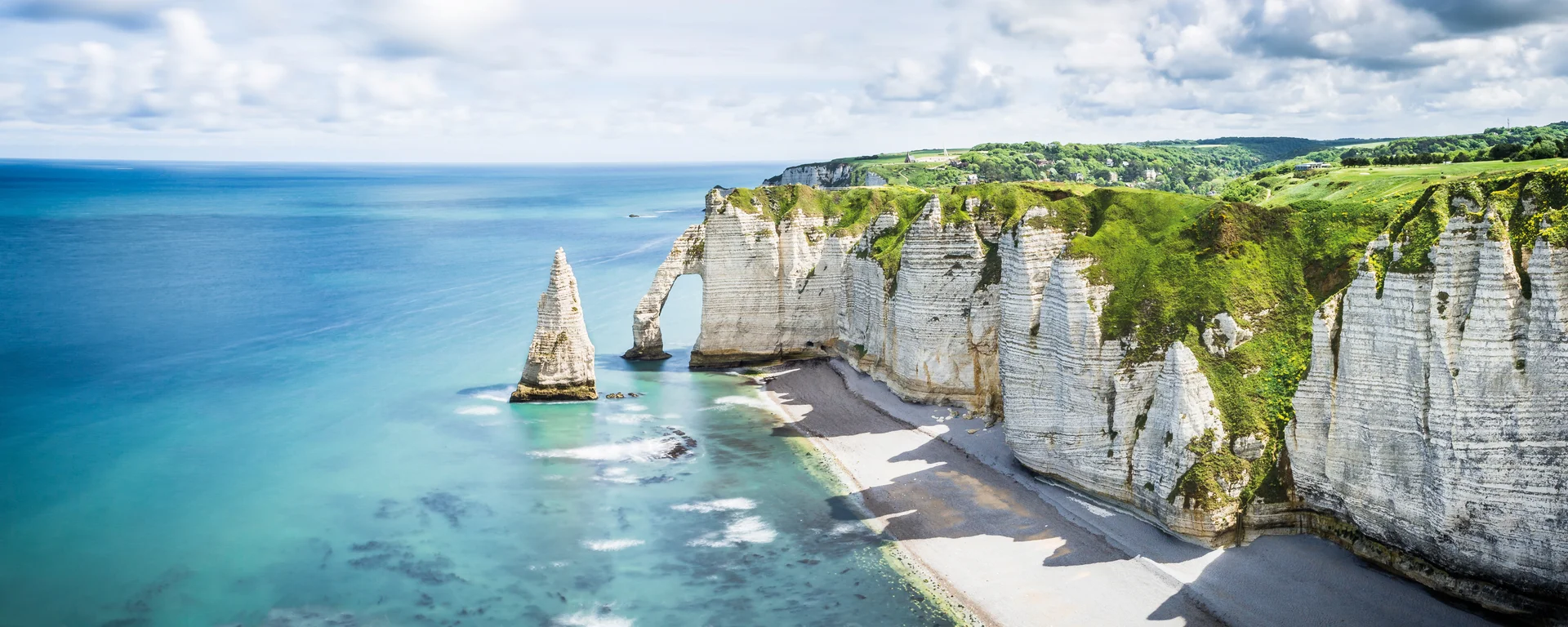 Ihre erste Etappe führt Sie zu einem der beeindruckendsten Naturwunder der Normandie, den majestätischen Kreideklippen von Etretat. Diese berühmten Felsformationen, die die Küste prägen, sind nicht nur ein visuelles Spektakel, sondern auch ein Ort voller Geschichten. Bewundern Sie die drei markanten Felsentore – die Porte d’Aval mit der Aiguille, die Manne Porte und die Porte d'Amont – während Sie entlang der kleinen Straßen der Alabasterküste radeln. Ihr nächstes Ziel ist Fécamp, einst der Hauptstützpunkt der französischen Neufundlandfischer, die von hier aus in die weiten Ozeane aufbrachen. Die Tour endet im charmanten Seebad Saint-Aubin-sur-Mer, wo die bunten Badehäuser einladend auf Sie warten. Übernachtung im Raum Rouen.