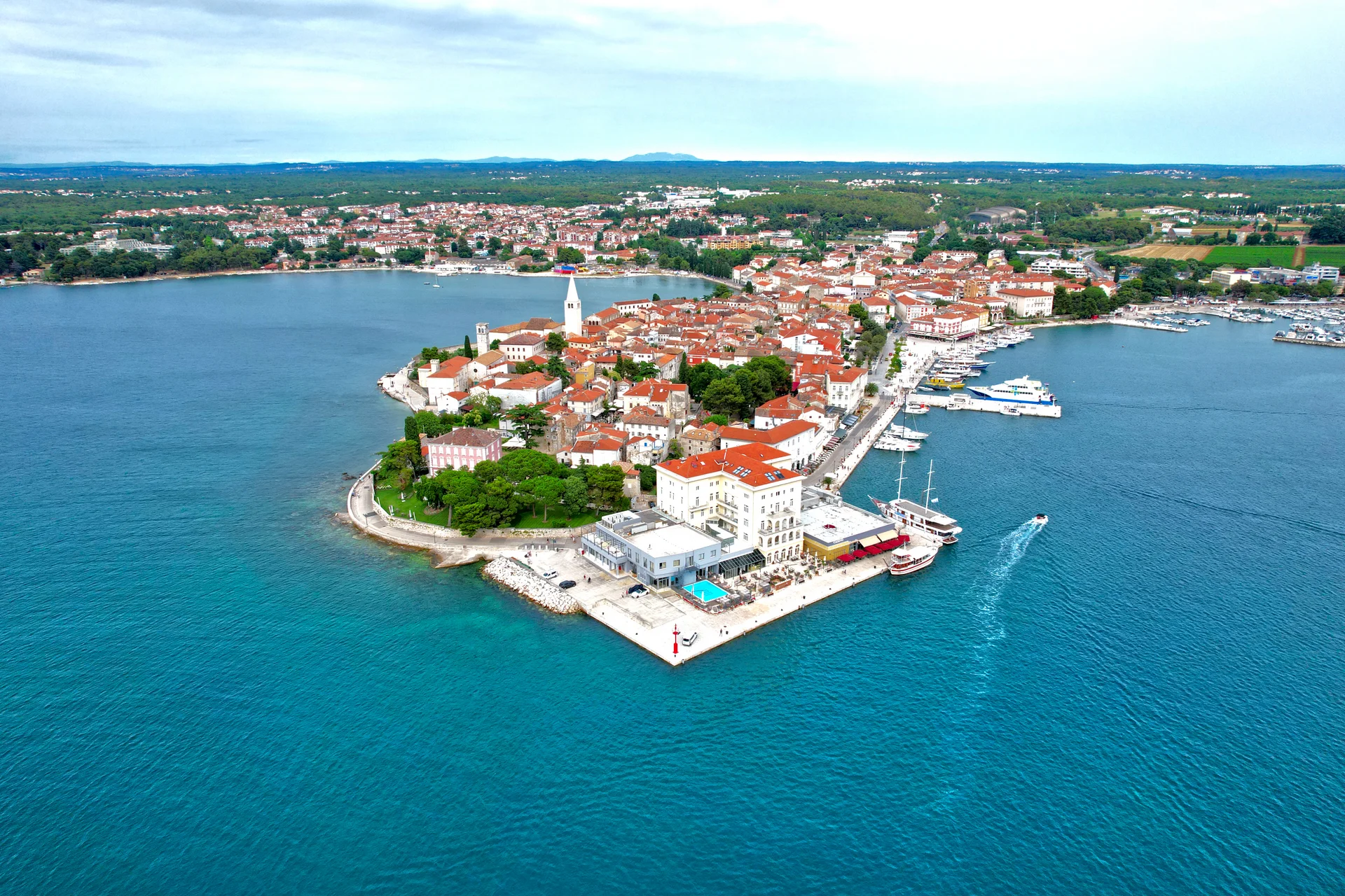 2. Tag: Der Tag beginnt mit einer geführten Besichtigung von Novigrad, einer charmanten Küstenstadt mit reicher Geschichte. Bei einem Spaziergang durch die gut erhaltene Altstadt und entlang des Hafens entdecken Sie kulturelle Highlights und genießen das mediterrane Flair dieses ruhigen Ortes. Anschließend unternehmen Sie eine Bootsfahrt durch den beeindruckenden Limfjord (Limski Kanal), ein geschütztes Naturgebiet mit grünen Hängen und steilen Klippen. Während der Fahrt wird Ihnen ein traditionelles Mittagessen an Bord serviert, meist mit Fisch- oder Fleischgerichten und regionalen Beilagen. Nach dem Essen geht es weiter mit der Bootsfahrt nach Vrsar, einem malerischen Küstenort mit venezianischem Charme. Dort erwartet Sie eine interessante Stadtführung, bei der Sie Wissenswertes über die Geschichte, Architektur und Besonderheiten dieses ehemaligen Fischerortes erfahren. Genießen Sie die entspannte Atmosphäre, den Blick auf die vorgelagerten Inseln und die Geschichten, die Vrsar zu erzählen hat.