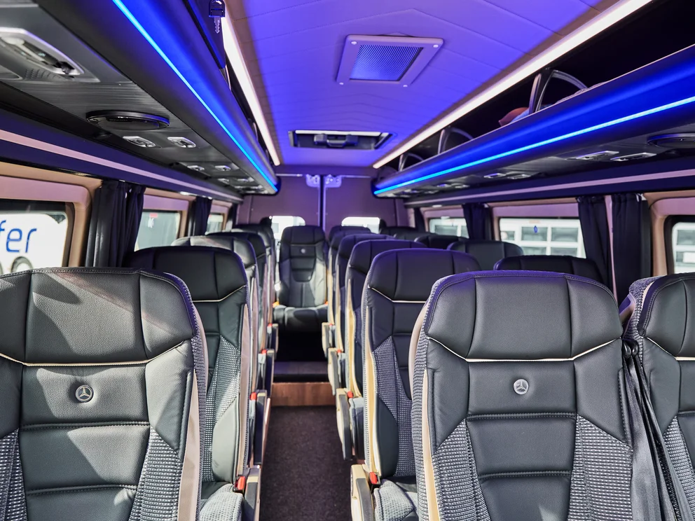 Mit über 40 modernen Bussen bieten wir für jede Reise den passenden Komfort – vom kompakten 8-Sitzer bis zum geräumigen Doppelstockbus mit 80 Sitzplätzen. Jeder unserer Busse ist hochwertig ausgestattet, bietet maximalen Sitzkomfort und moderne Sicherheitsstandards, damit Ihre Reise entspannt und sorglos beginnt.